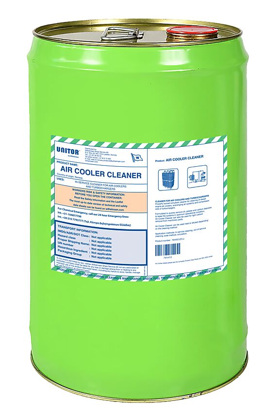 Unitor? Air Cooler Cleaner? is a powerful solvent emulsion cleaner for the cleaning of diesel engine air coolers, scavenging air systems and compressor sides of turbochargers.