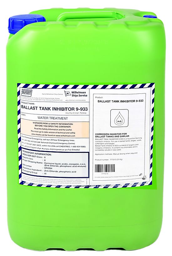 NALFLEET? Ballast Tank Inhibitor 9-933? is a liquid film-forming corrosion inhibitor. For use in ballast tanks, bilges, voids, cofferdams and barges. NALFLEET? Ballast Tank Inhibitor 9-933? is a blend of organic and inorganic inhibitors. It contains no chromates and is completely soluble in sea water.