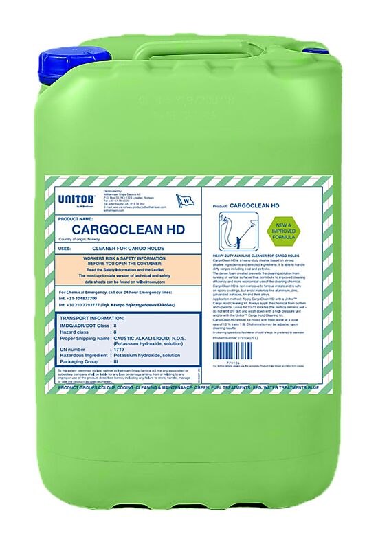 Unitor CargoClean HD? is a heavy duty alkaline cleaner with cutting-edge cleaning technology newly formulated for cleaning cargo holds on bulk carriers.