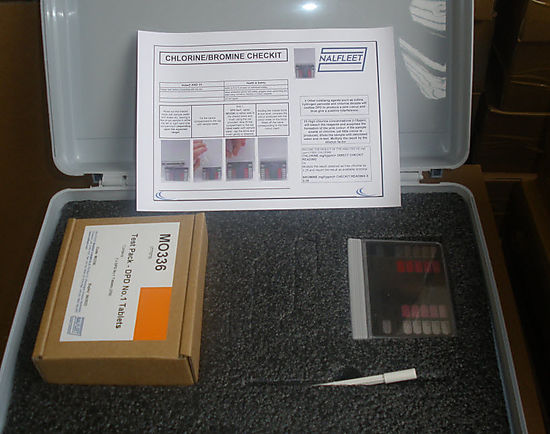 A comparator type test kit for the measurement of free chlorine and bromine levels in potable water, waste water and pools and spas.
