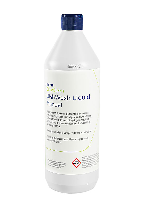 The Unitor? EASYCLEAN? DISHWASH LIQUID MANUAL is a mild detergent cleaner intended for manual dish washing.