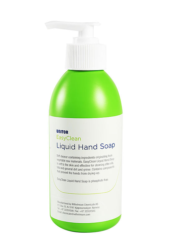 The Unitor? EASYCLEAN? LIQUID HAND SOAP is a mild and effective hand cleaner containing ingredients originating from vegetable raw materials.