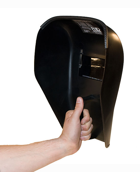 Hand held face shield for protection of welders eyes and face towards rays, heat and sparks during welding