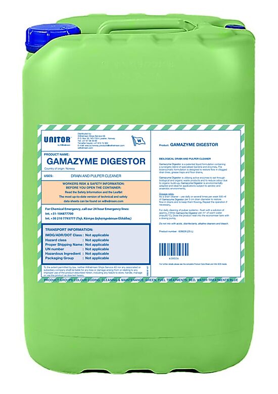 Unitor? Gamazyme? Digestor is a patented formulation containing a synergetic blend of highly specialised bacteria. The mix of micro-organisms in this product increases organic degradation performance.
