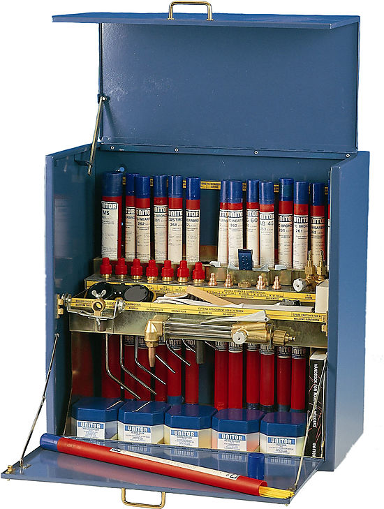 This cabinet is a complete gas welding work shop with equipment and consumables for all normal gas welding, brazing and cutting operations on board.