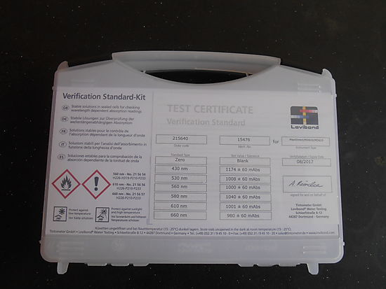 The verification standard kit for the MaxiDirect photometer is designed to assure the user of the accuracy and the reliability of the results. The shelf life of the verification standard kit is two years from the date of production, provided that storage and use are in accordance with the instructions provided.