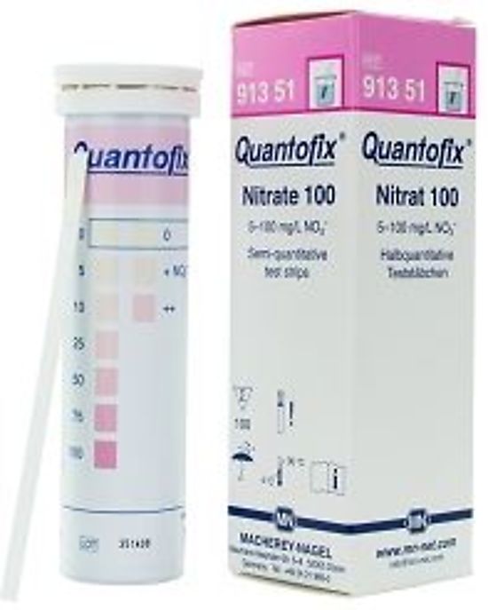 Consumables: Quantofix Nitrate 100 test strips are used for the semi-quantitative determination of nitrate ions (NO3?) in aqueous solutions or samples.