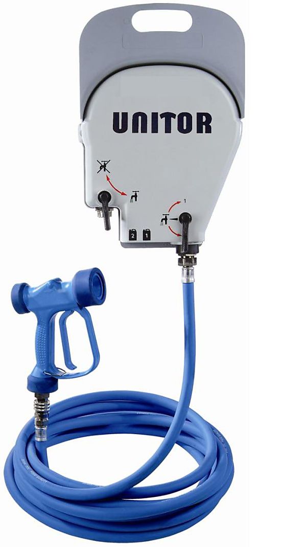 The Unitor? Cleaning Station? allows mixing of up to two different chemicals into ready to use dilution that can be easily applied and rinsed off by the included spray gun.