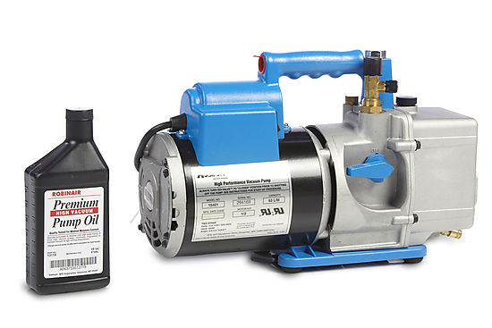 The vacuum pump is used for removing moisture and non-condensable gases from refrigeration systems after maintenance or repair. The pump is supplied with a Vacuum pump oil (0.95 l). The oil is made from a paraffinic mineral oil base, to be used in deep vacuum applications.